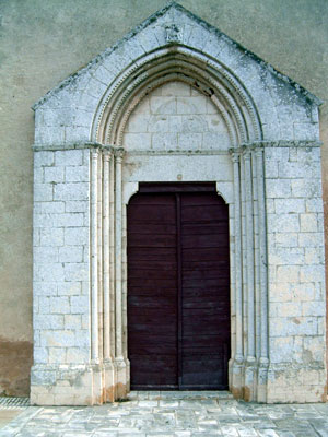 Façade de l'église avec le portail central ogival.